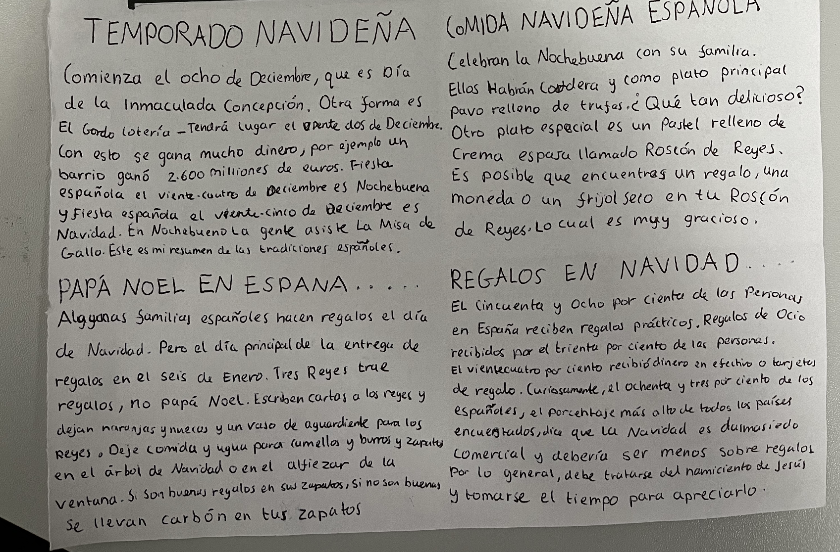 1st place... Momina Waseem 10X with her poster about Christmas in Spain (Spanish)